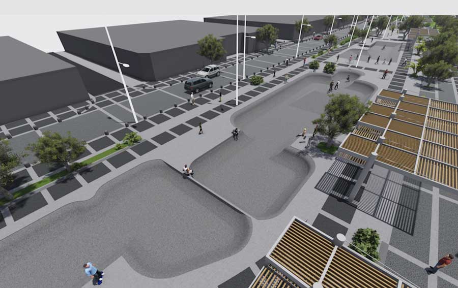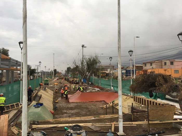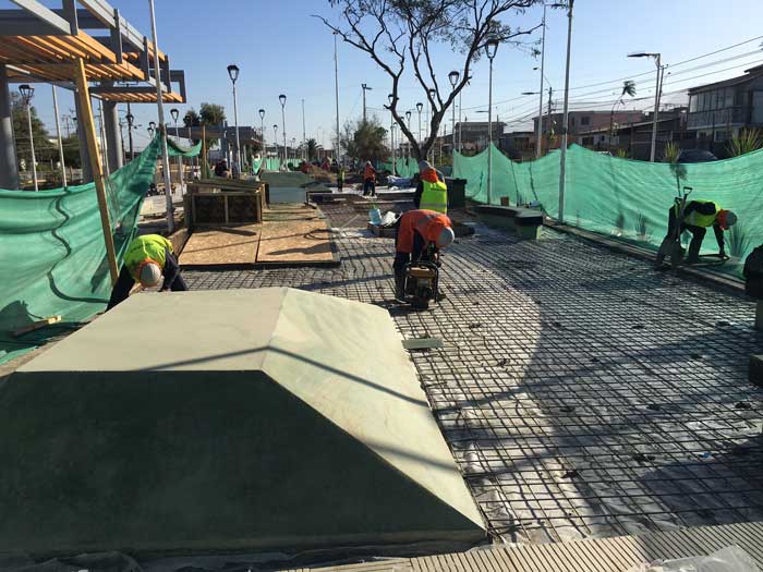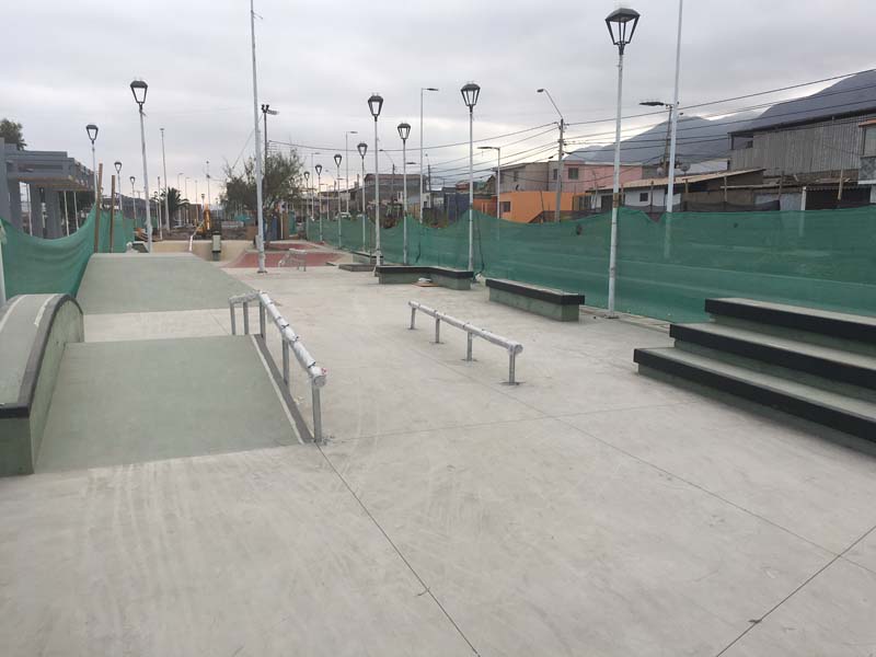 Socoher está encargado de la construcción de un Skatepark, el cual consiste en la habilitación de una zona exclusiva para deportes no convencionales, manteniendo la arborización existente. Se considera confección de escalas, rampas, bowl, entre otros de hormigón armado. La zona a intervenir es de 1.757 m² app.
