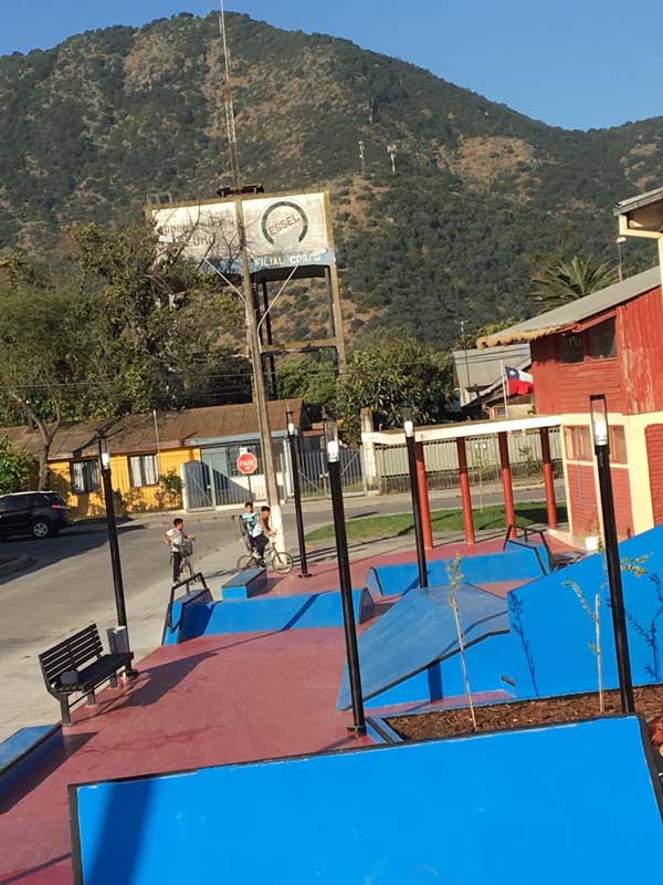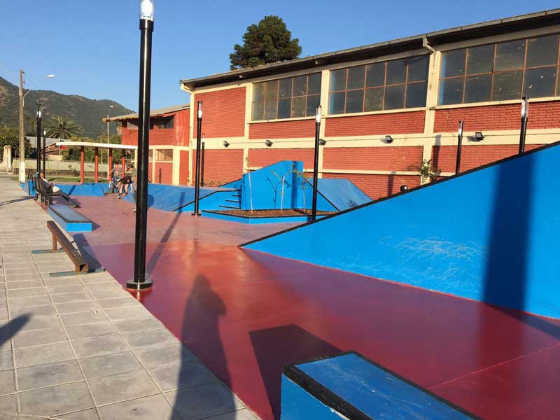 Skatepark está encargado de la ejecución correspondiente a Construcción Skate Plaza de Peumo, considera una plaza activa con recorridos basada en una temática de deportes de ruedas, que al mismo tiempo sea una plaza dura con masa arbórea potenciándose como lugar de estanco. Las dependencias son de hormigón en su totalidad con rieles y barras. Contempla áreas verdes, iluminación, rampas dobles, media tubería y batería de descenso, zona a intervenir de 542 m².