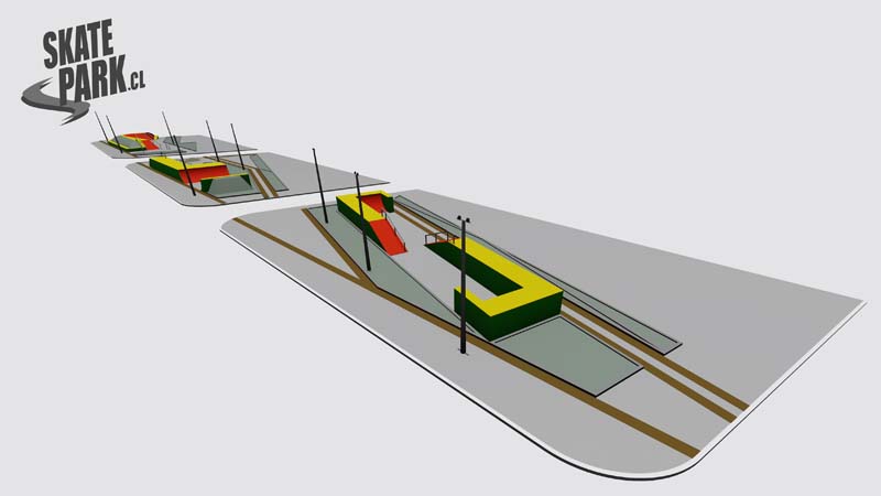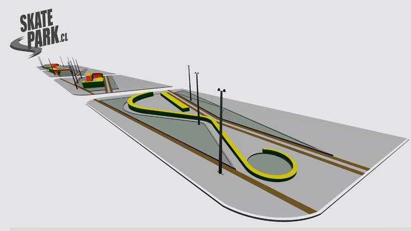 Skatepark está encargado de la construcción de un Skatepark de 1390 m² aproximadamente que se divide en cuatro sectores, consiste en la construcción de obstáculos de hormigón armado, rampas, escalaras, pirámide, barra de deslizamiento, entre otros elementos. Además contempla jardineras, proyecto eléctrico, mobiliario urbano, veredas y sector con áreas verdes.